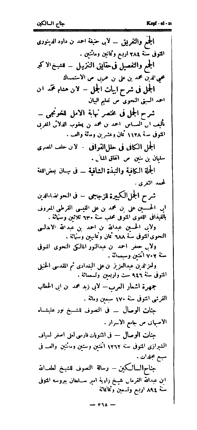 الجمع والتفصيل في حقايق التنزيل - للشيخ الأكبر محيي الدين محمد بن علي بن عربي ص الاستمساك الجمل في شرح أبيات الجمل - لابن هشام محمد ابن أحمد السبتي النحوي ص تعليم البيان شرح الجمل في مختصر نهابة الأمل للخونجي - تأليف أبي العباس أحمد بن محمد بن يعقوب الدلائي المغربي المتوفى سنة 1128 ثمان وعشرين ومائة وألف.