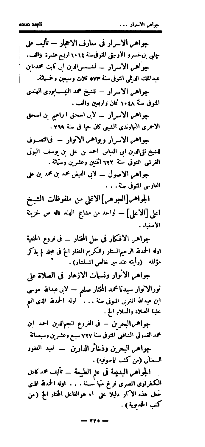 جواهر الأصول - لأبي الفيض محمد بن محمد بن علي الفارسي المتوفى سنة..الجواهر [الجوهر] الأغلى من ملفوظات الشيخ أعلى [الأعلى]- لواحد من مشايخ الهند قاله ص خزينة الأصفياء.