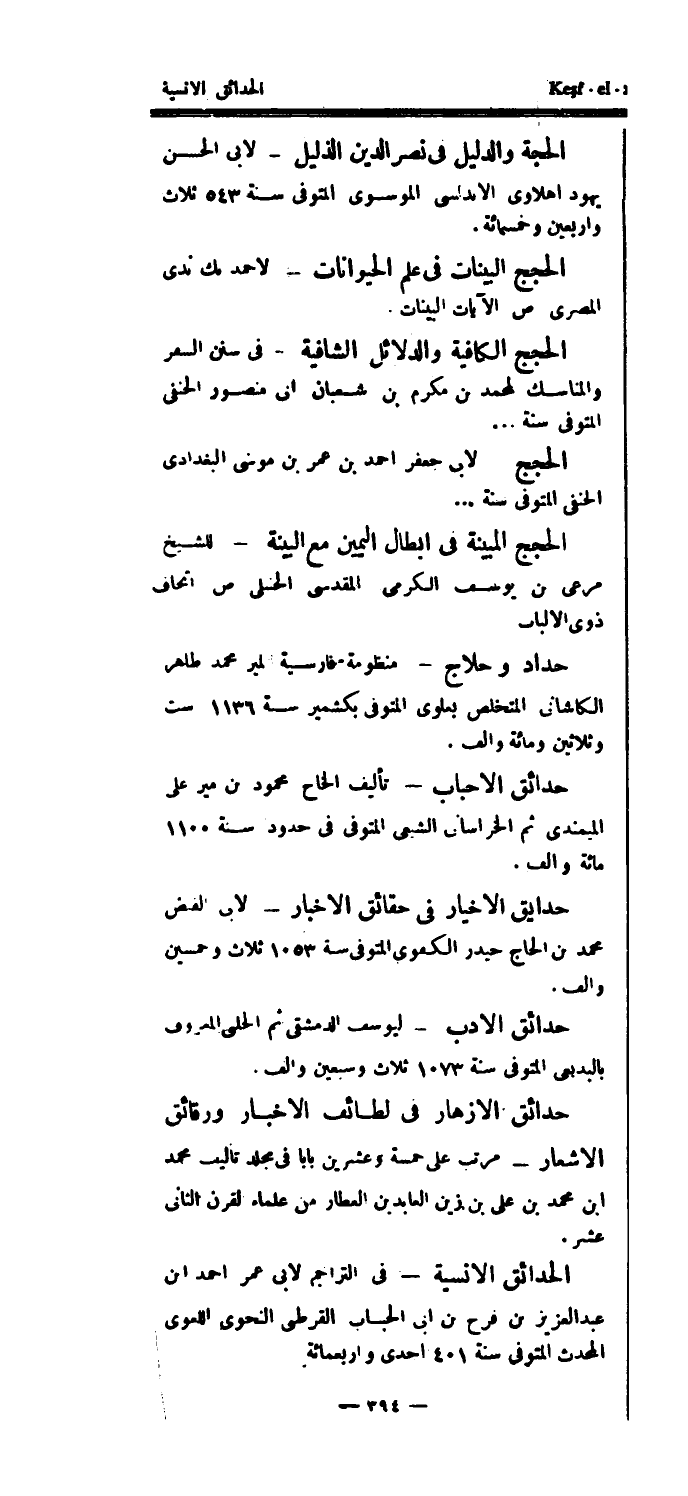 حدايق الأخيار في حقائق الأخبار - لأبي الفض محمد بن الحاج حيدر الكفوي المتوفى سنة 1053 ثلاث وخمسين وألف.