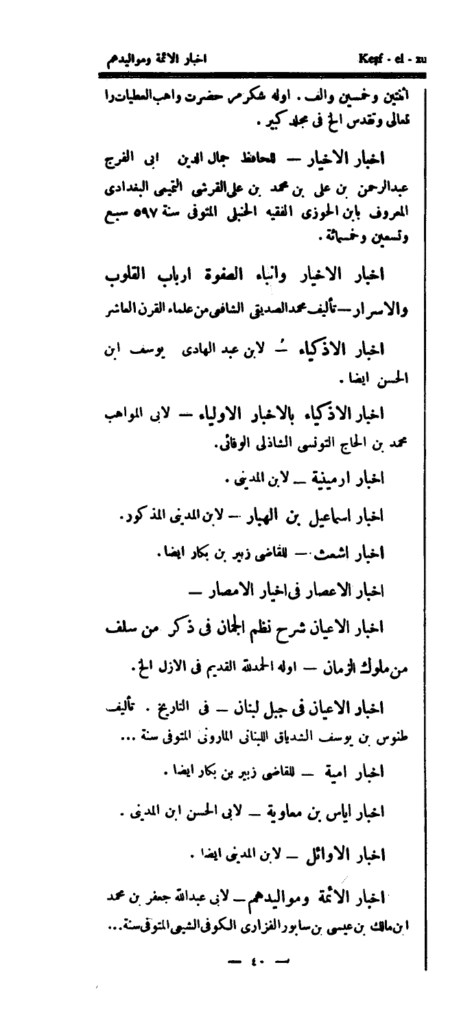 أخبار الأخيار - للحافظ جمال الدين أبي الفرج عبد الرحمن بن علي بن محمد بن علي القرشي التميمي البغدادي المعروف بابن الحوزي الفقيه الحنبلي المتوفى سنة 597 سبع وتسعين وخمسمائة.
