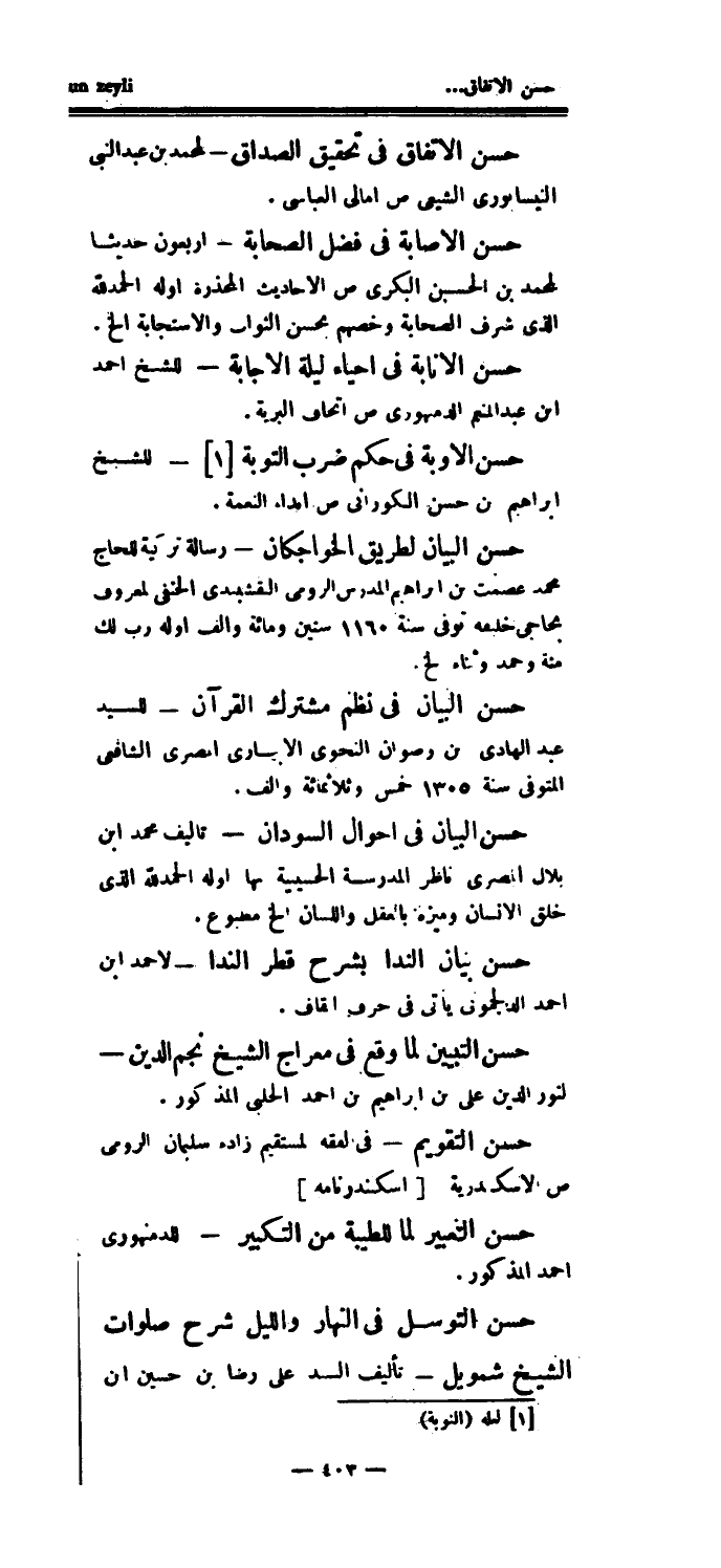 حسن التقويم - في الفقه لمستقيم زاده سليمان الرومي ص الاسكندرية [اسكندرنامه] حسن التعبير لما للطيبة من التكبير - للدمنهوري أحمد المذكور.