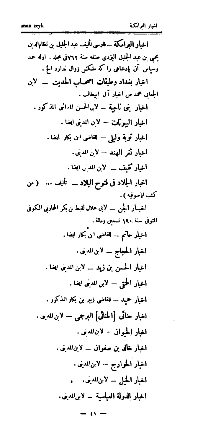 أخبار البرامكة - فارسي تأليف عبد الجليل بن نظام الدين يحيى بن عبد الجليل اليزدي صنفه سنة 762 في مجلد.