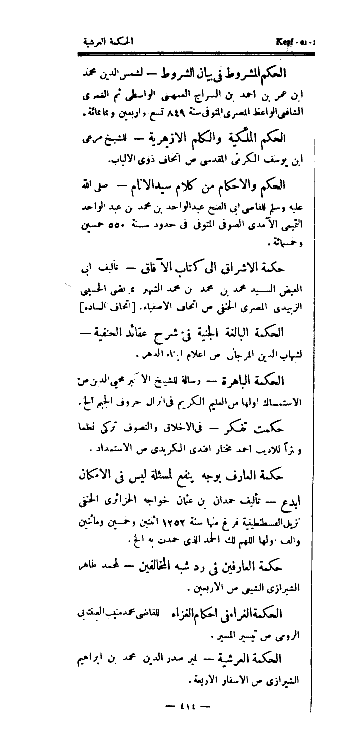 الحكم الملكية والكلم الأزهرية - للشيخ مرعي ابن يوسف الكرمي المقدسي ص إتحاف ذوي الألباب.