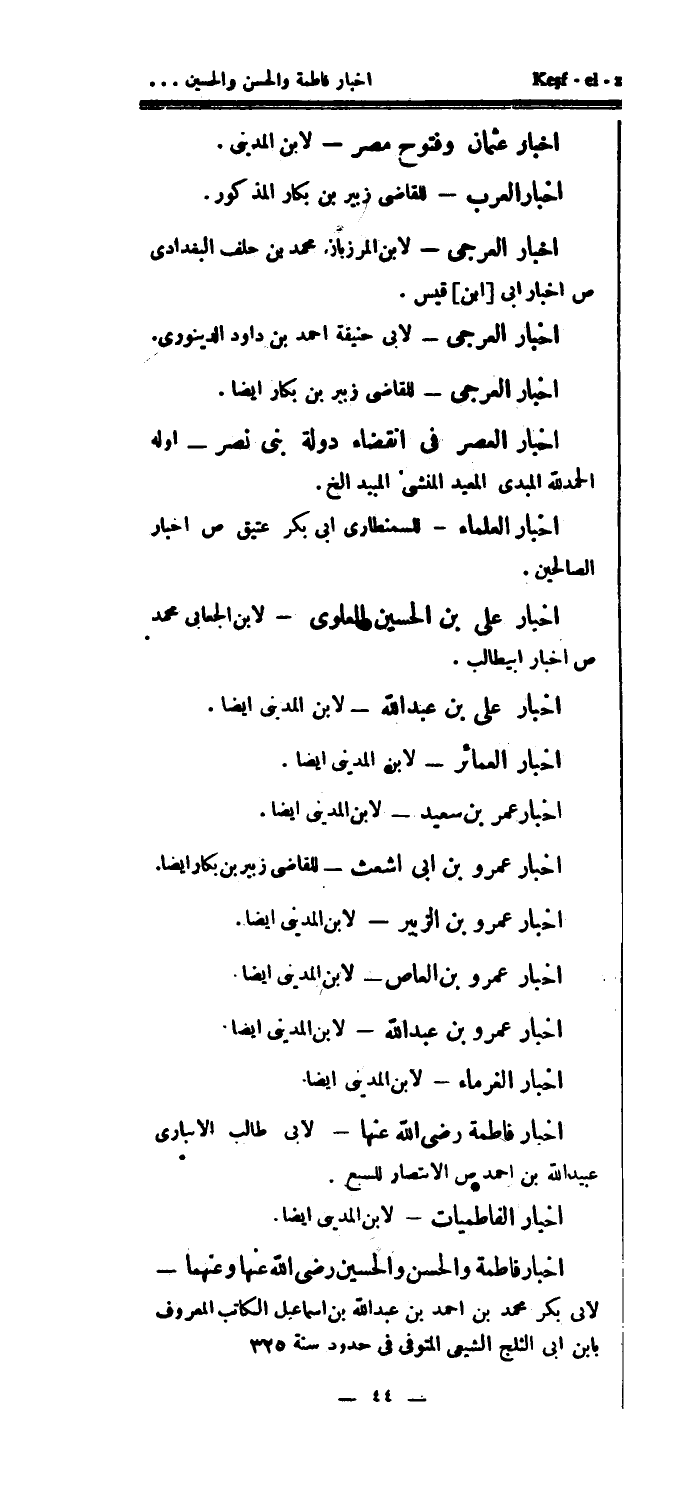 أخبار فاطمة والحسن والحسين رضي الله عنها وعنهما - لأبي بكر محمد بن احمد بن عبد الله بن إسماعيل الكاتب المعروف بابن أبي الثلج الشيعي المتوفى في حدود سنة 325