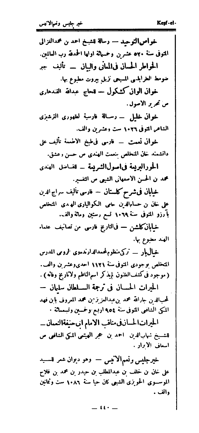 خيابان كلشن - في التاريخ فارسي من تصانيف علماء الهند مطبوع بها.