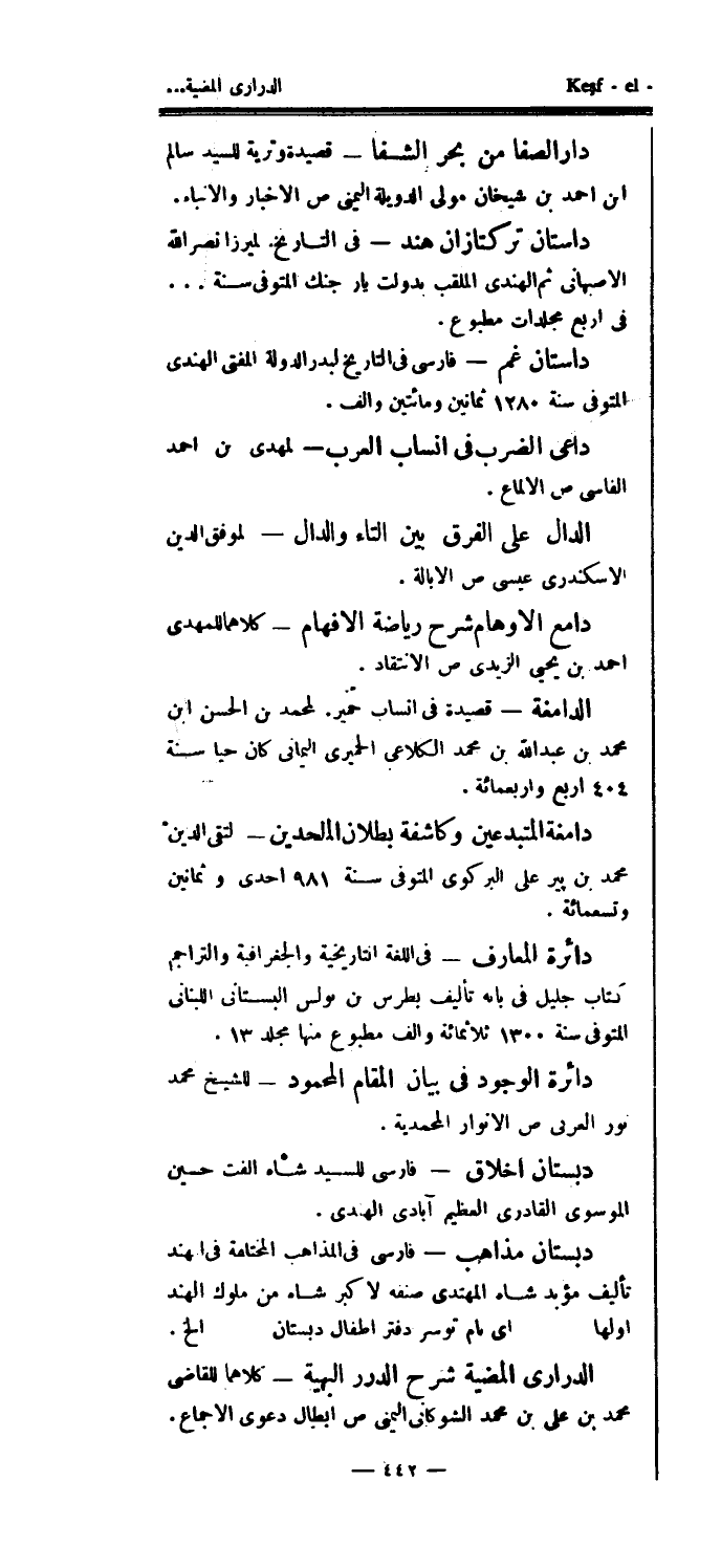 دامغة المتبدعين وكاشفة بطلان الملحدين - لتقي الدين محمد بن پير علي البركوي المتوفى سنة 981 إحدى وثمانين وتسعمائة.