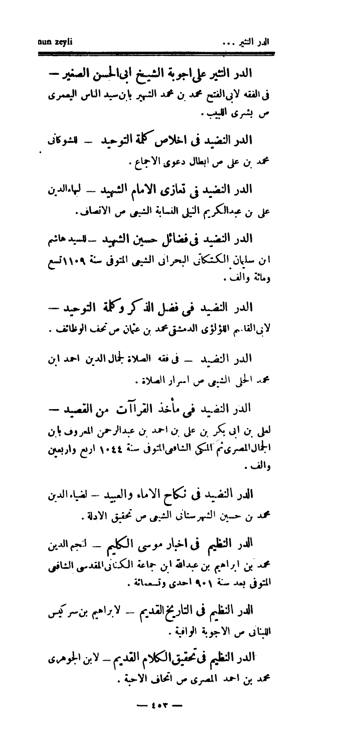 الدر النثير على أجوبة الشيخ أبي الحسن الصغير - في الفقه لأبي الفتح محمد بن محمد الشهير بابن سيد اليعمري ص بشرى اللبيب.