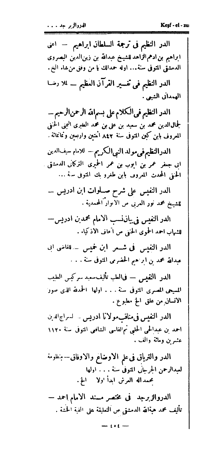 عبد الله محمد بن إبراهيم الحضرمي المتوفى سنة ... الدر النفيس - في الطب تأليف سعيد سركيس الطبيب المسيحي المصري المتوفى سنة..اولها الحمدلله الذي صور الإنسان من علق الخ مطبوع.