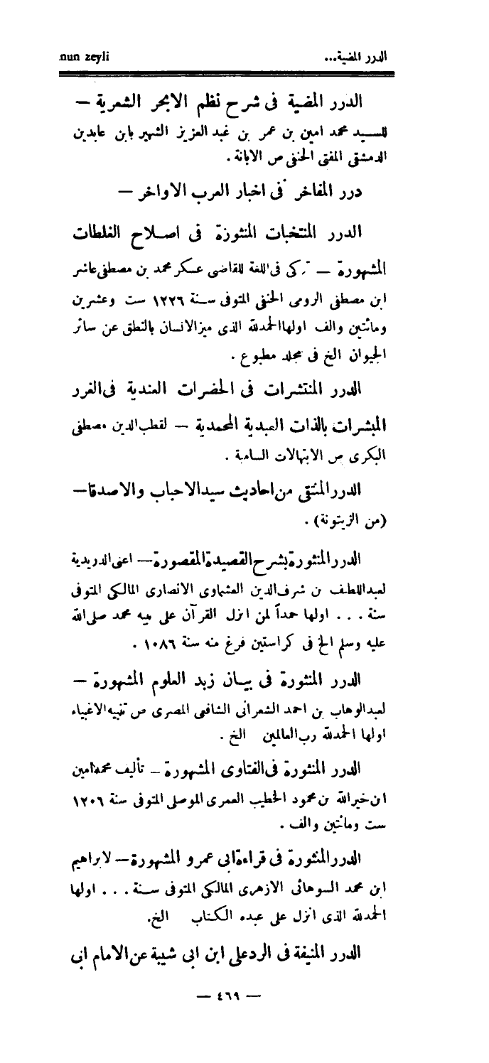 الدرر المنثورة في الفتاوى المشهورة - تأليف محمه أمين ابن خير الله بن محمود الخطيب العمري الموصلي المتوفى سنة 1206 ست ومائتين وألف.