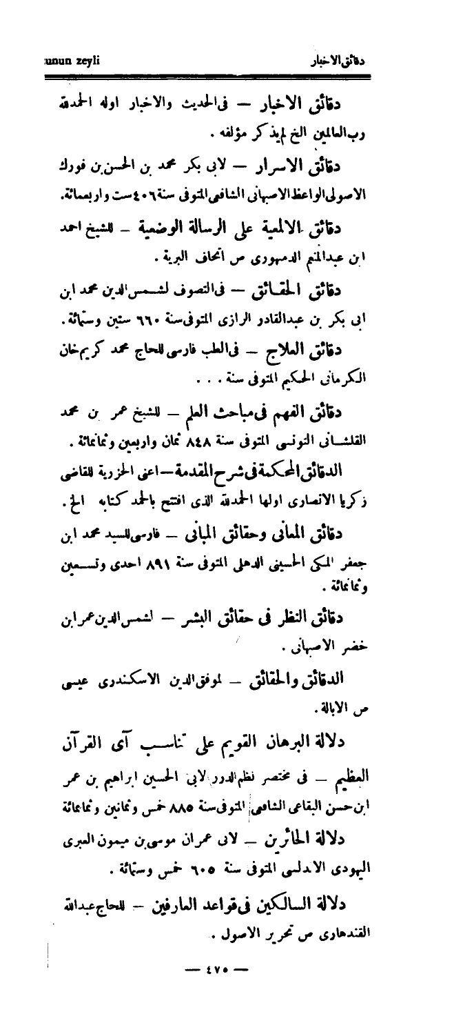 دقائق العلاج - في الطب فارسي للحاج محمد كريم خان الكرماني الحكيم المتوفى سنة..دقائق الفهم في مباحث العلم - للشيخ عمر بن محمد القلشاني التونسي المتوفى سنة 848 ثمان وأربعين وثمانمائة.