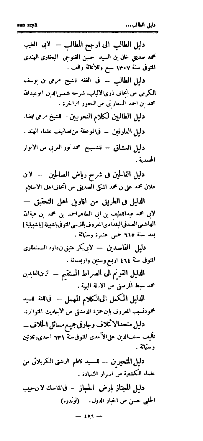 دليل الطالب إلى أرجح المطالب - لأبي الطيب محمد صديق خان بن السيد حسن القنوجي البخاري الهندي المتوفى سنة 1307 سبع وثلاثمائة وألف.