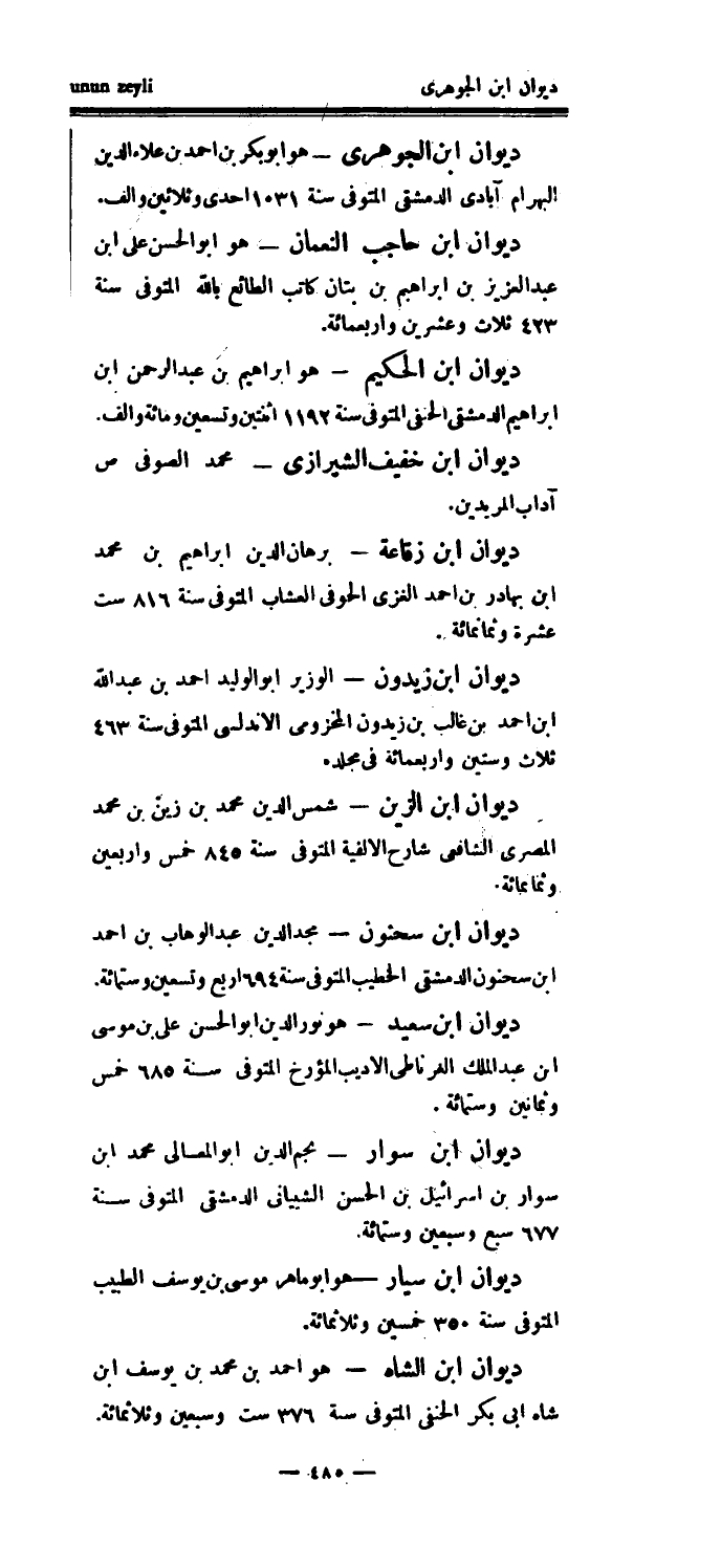 ديوان ابن الجوهري - هو أبو بكر بن أحمد بن علاء الدين البهرام آبادي الدمشقي المتوفى سنة 1031 إحدى وثلاثين وألف.