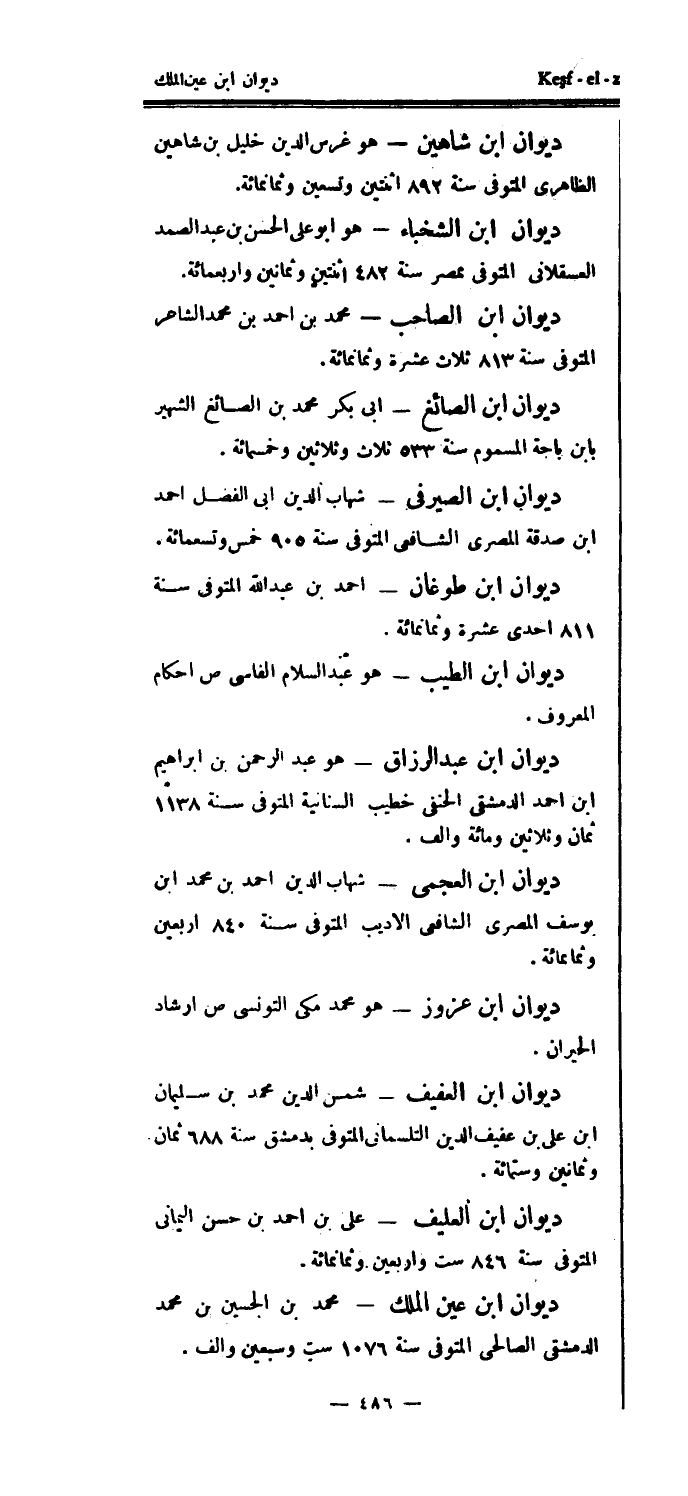 ديوان ابن شاهين - هو غرس الدين خليل بن شاهين الظاهري المتوفى سنة 892 اثنتين وتسعين وثمانمائة.
