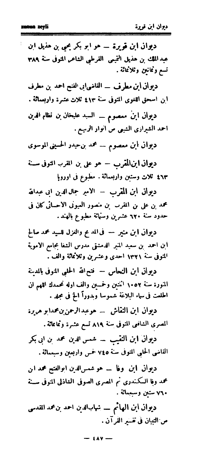 ديوان ابن معصوم - محمد بن حيدر الحسيني الموسوي ديوان ابن المقرب - هو علي بن المقرب المتوفى سنة 463 ثلاث وستين وأربعمائة.