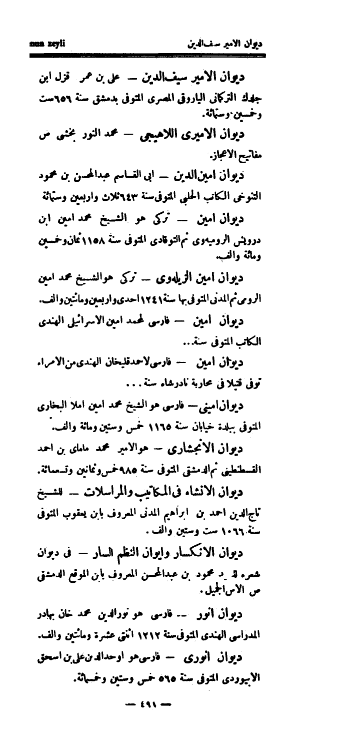 ديوان أمين - فارسي لمحمد أمين الإسرائيلي الهندي الكاتب المتوفى سنة..ديوان أمين - فارسي لأحمد قليخان الهندي من الأمراء توفي قتيلاً في محاربة نادرشاه سنة..ديوان أميني - فارسي هو الشيخ محمد أمين أملاً البخاري المتوفى ببلده خيابان سنة 1165 خمس وستين ومائة وألف.