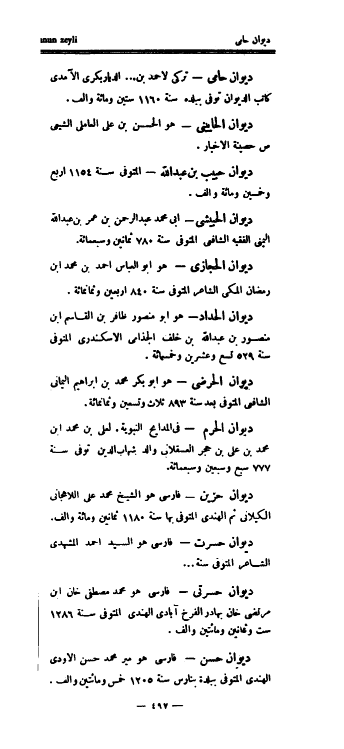 ديوان حزين - فارسي هو الشيخ محمد علي اللاهجاني الكيلاني ثم الهندي المتوفى بها سنة 1180 ثمانين ومائة وألف.