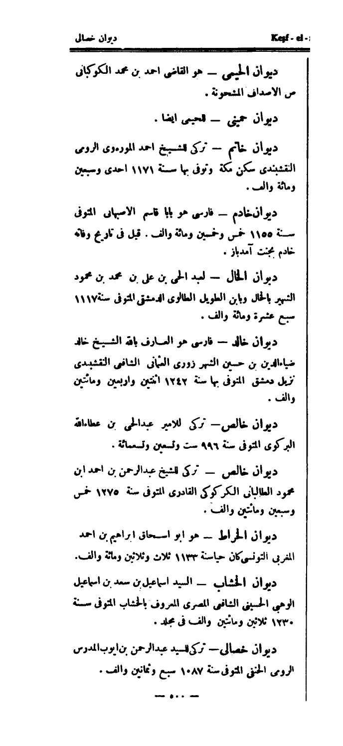 ديوان الخال - لعبد الحي بن علي بن محمد بن محمود الشهير بالخال وبابن الطويل الطالوي الدمشقي المتوفى سنة 1117 سبع عشرة ومائة وألف.