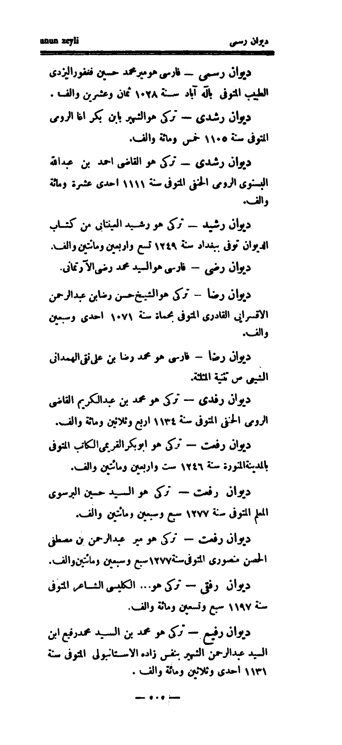ديوان رفقي - تركي هو..الكليسي الشاعر المتوفى سنة 1197 سبع وتسعين ومائة وألف.