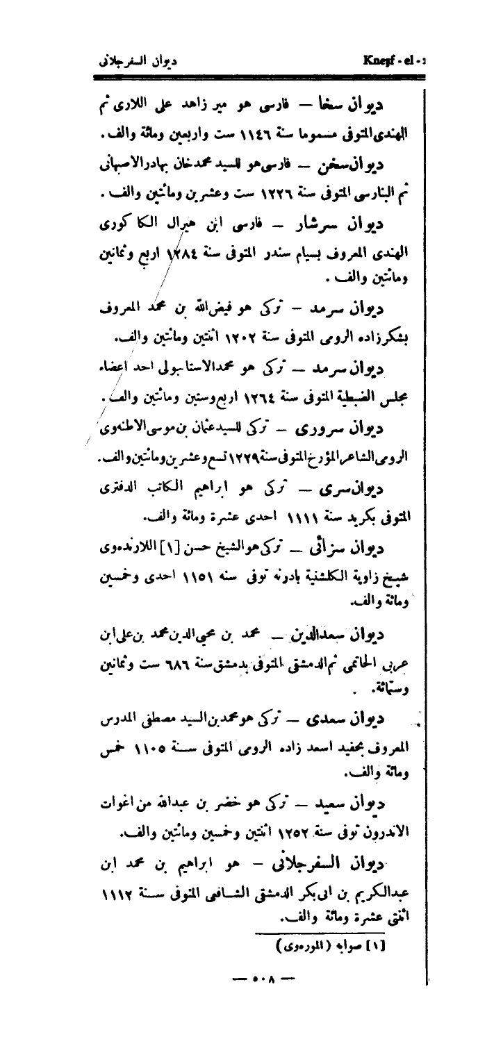 ديوان السفرجلاني - هو إبراهيم بن محمد ابن عبد الكريم بن أبي بكر الدمشقي الشافعي المتوفى سنة 1112 اثنتي عشرة ومائة والف.