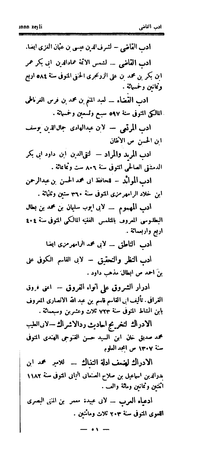 أدب القاضي - لشمس الأئمة عماد الدين أبي بكر عمر ابن بكر بن محمد بن علي الزرنجري الحنفي المتوفى سنة 584 أربع وثمانين وخمسمائة.