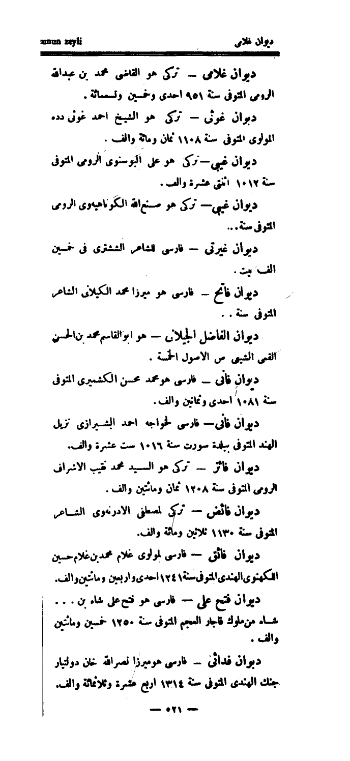 ديوان غلامي - تركي هو القاضي محمد بن عبد الله الرومي المتوفى سنة 951 إحدى وخمسين وتسعمائة.
