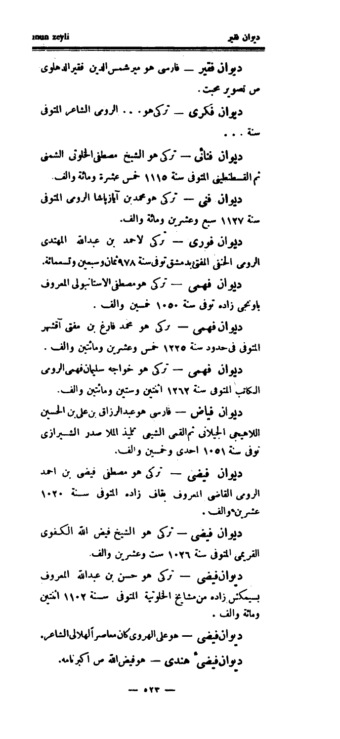 ديوان فكرى - تركي هو..الرومي الشاعر المتوفى سنة..ديوان فنائي - تركي هو الشيخ مصطفى الخلوتي الشمني ثم القسطنطيني المتوفى سنة 1115 خمس عشرة ومائة وألف.