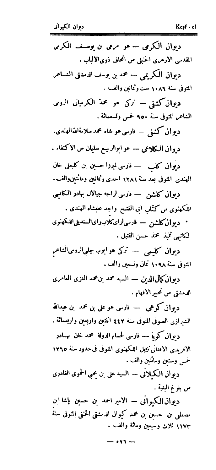 ديوان كشفي - تركي هو محمد الكرمياني الرومي الشاعر المتوفى سنة 950 خمس وتسعمائة.