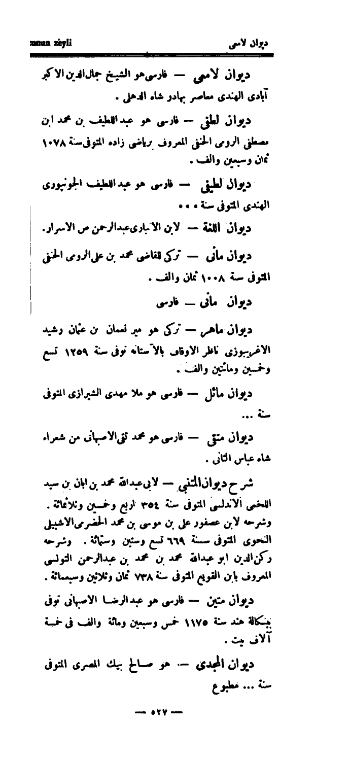 ديوان لامعي - فارسي هو الشيخ جمال الدين الأكبر أبادي الهندي معاصر بهادر شاه الدهلي.