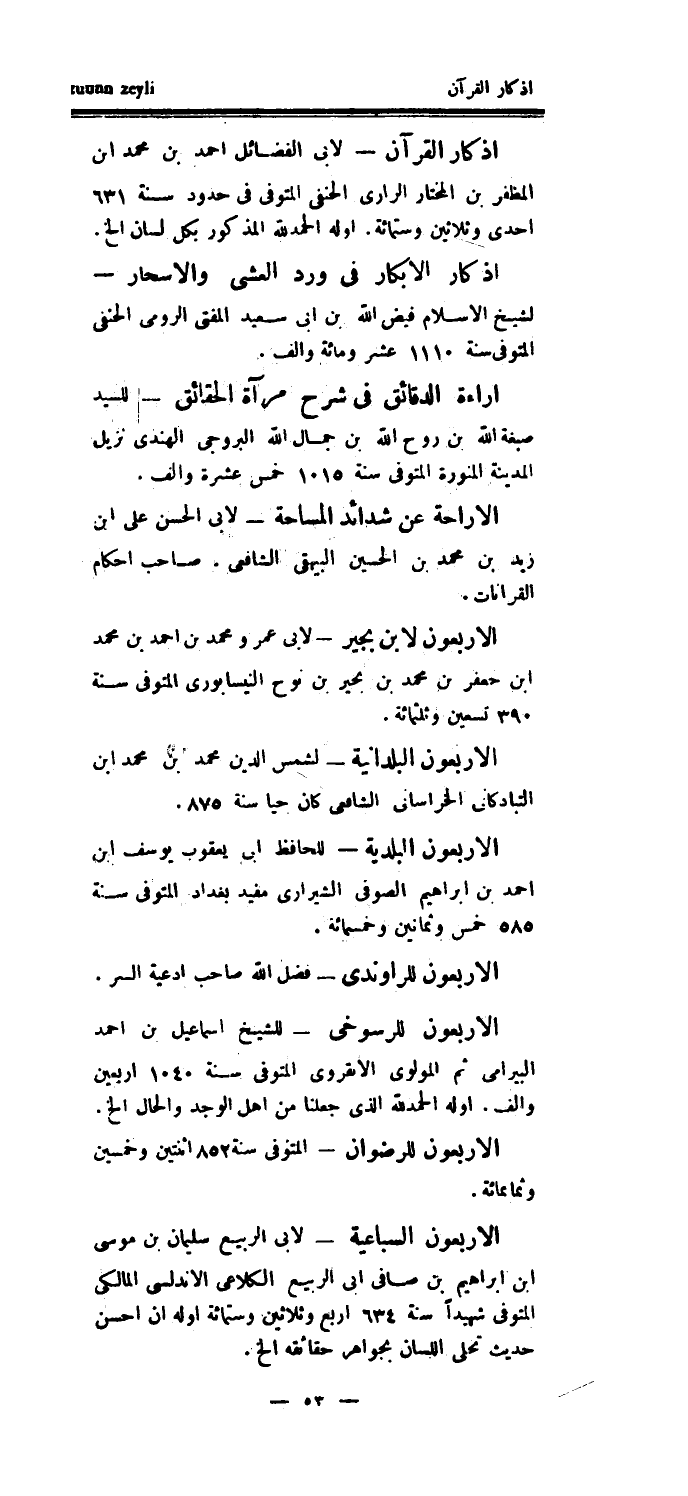 أذكار القرآن - لأبي الفضائل أحمد بن محمد ابن المظفر بن المختار الراري الحنفي المتوفى في حدود سنة 631 إحدى وثلاثين وستمائة.