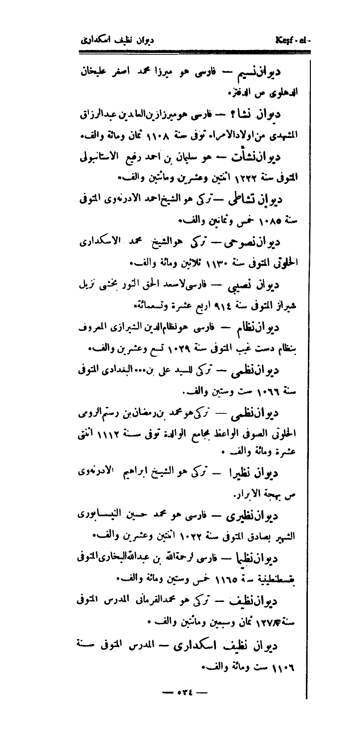 ديوان نظيف اسكداري - المدرس المتوفى سنة 1106 ست ومائة وألف.