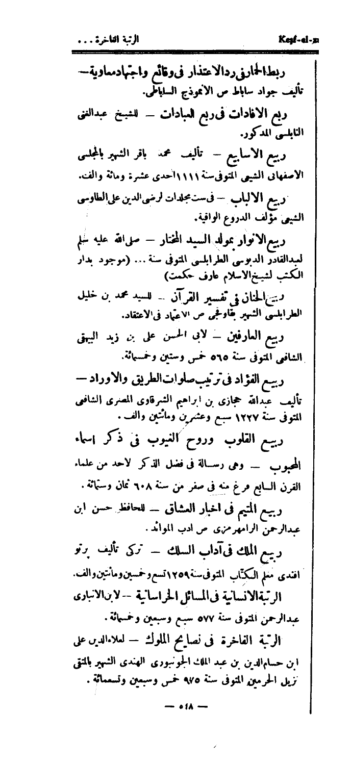 ربيع العارفين - لأبي الحسن على بن زيد البيهقي الشافعي المتوفى سنة 565 خمس وستين وخمسمائة.
