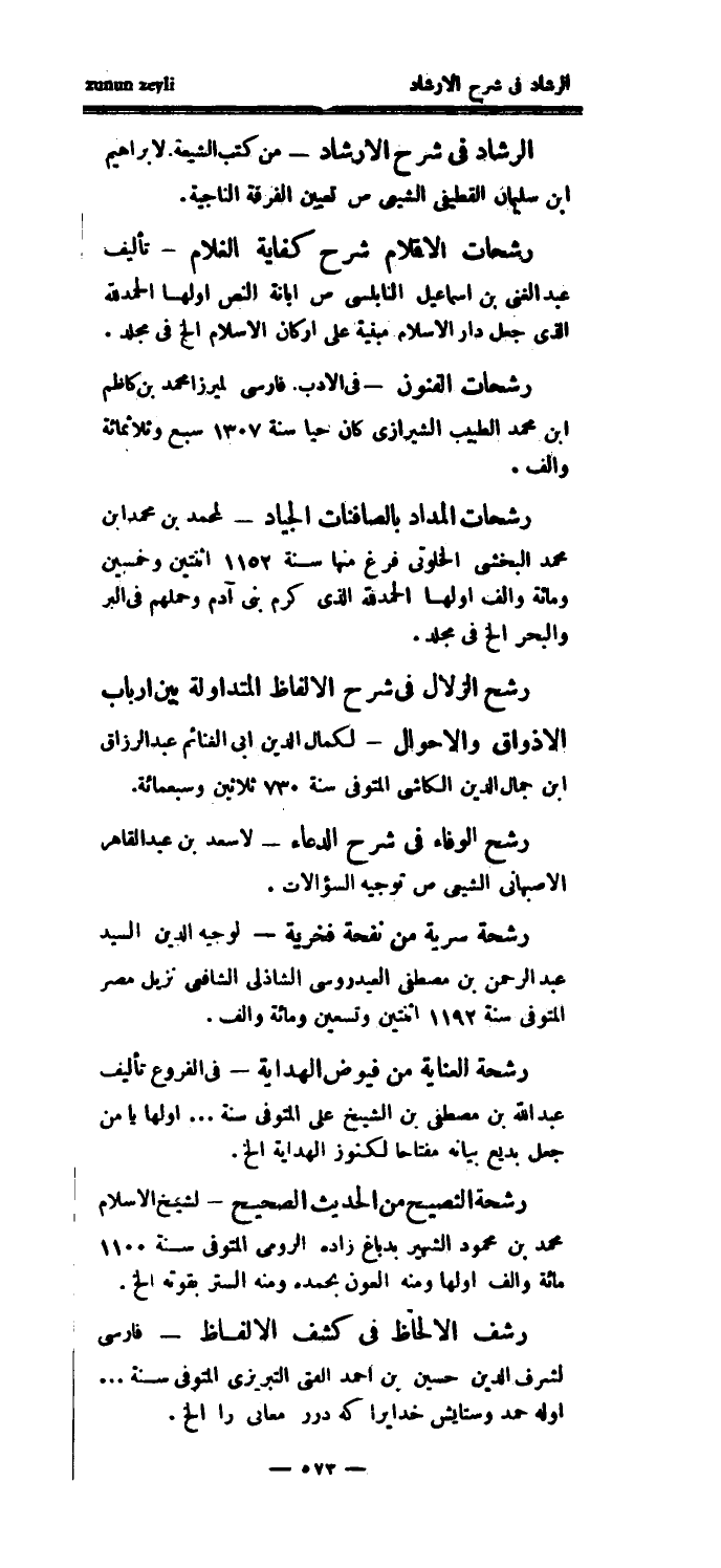 رشحات الفنون - في الأدب فارسي لميرزا محمد بن كاظم ابن محمد الطبيب الشيرازي كان حيا سنة 1307 سبع وثلاثمائة وألف.