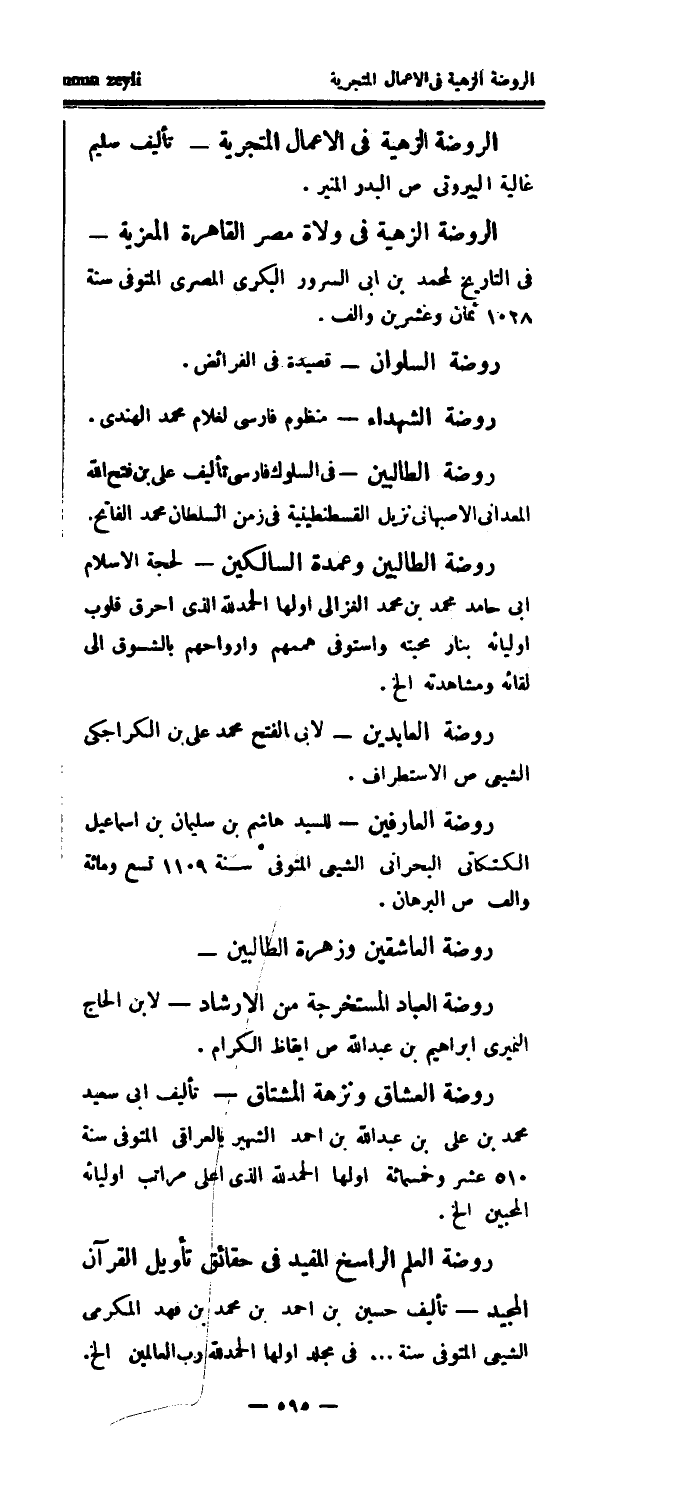 الروضة الزهية في الأعمال المتجرية - تأليف سليم غالية البيروتي ص البدر المنير.