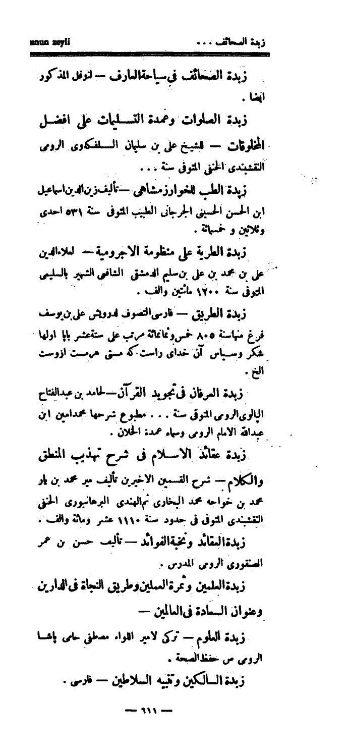 زبدة الصلوات وعمدة التسليمات على أفضل المخلوقات - للشيخ علي بن سليمان السلفكة وي الرومي النقشبندي الحنفي المتوفى سنة..زبدة الطب للخوارزمشاهي - تأليف زين الدين إسماعيل ابن الحسن الحسيني الجرجاني الطبيب المتوفى سنة 531 إحدى وثلاثين وخمسمائة.