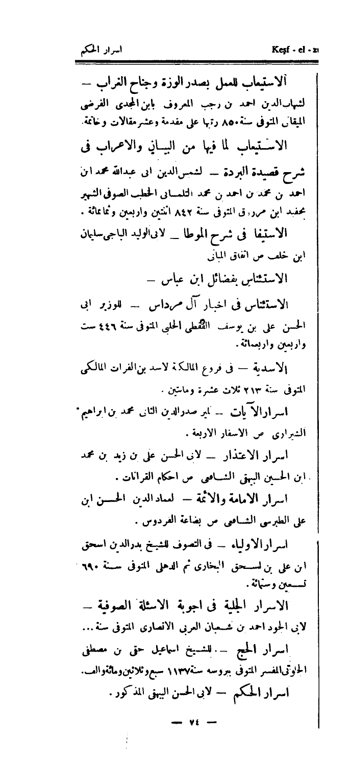 الأسرار الجلية في أجوبة الأسئلة الصوفية - لأبي الجود أحمد بن شعبان العربي الأنصاري المتوفى سنة..أسرار الحج - للشيخ إسماعيل حقي بن مصطفى الحلوتى المفسر المتوفى ببروسة سنة 1137 سبع وثلاثين ومائة وألف.