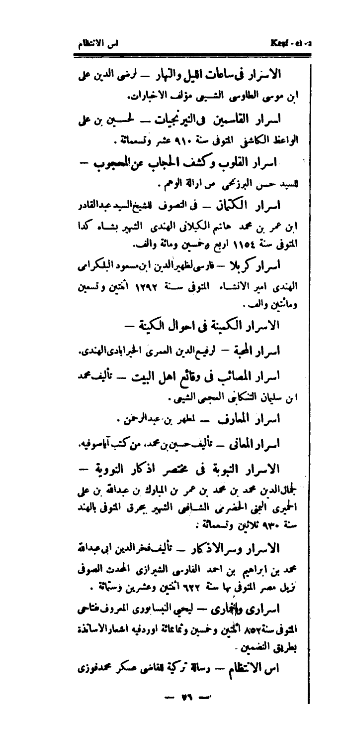 الأسرار الكمينة في أحوال الكينة - أسرار المحبة - لرفيع الدين العمري الخير أبادي الهندي.