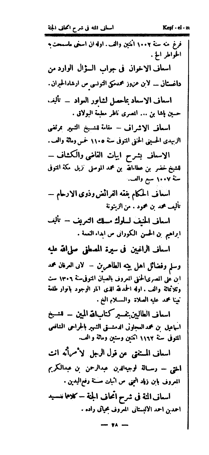 إسعاف المنة في شرح إتحاف الجنة - كلاهما للسيد أحمد بن احمد الألبستاني المعروف بحياتي زاده.