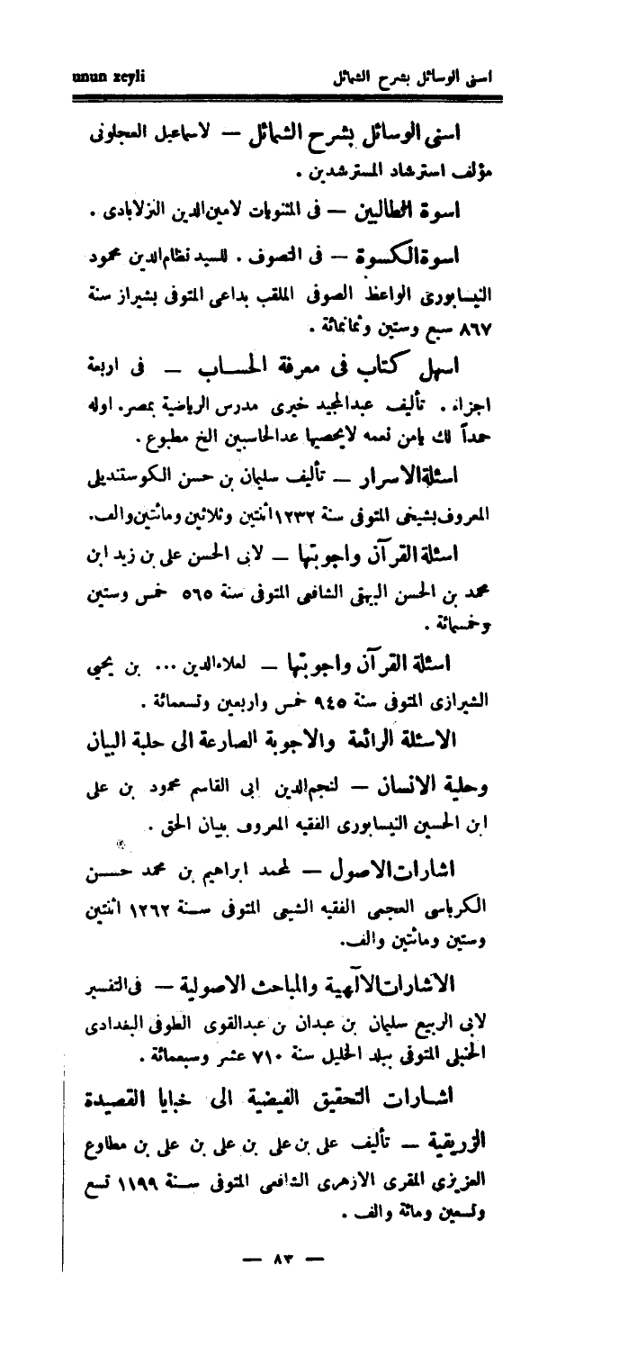 أسنى الوسائل بشرح الشمائل - لإسماعيل العجلوني مؤلف استرشاد المسترشدين.