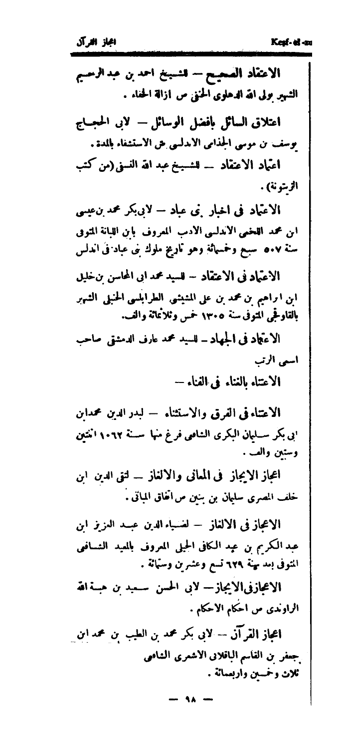 إعجاز القرآن - لأبي بكر محمد بن الطيب بن محمد ابن جعفر بن القاسم الباقلا؟ ى الاشعري الشافعي ثلاث وخمسين وأربعمائة.