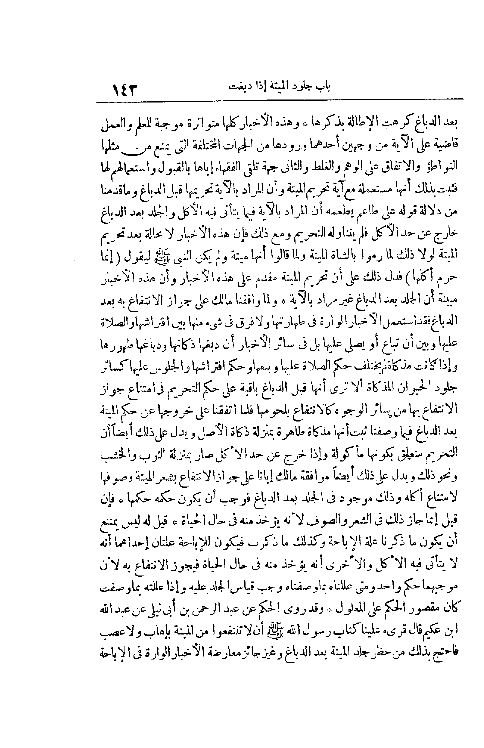 فَاحْتَجَّ بِذَلِكَ مَنْ حَظَرَ جِلْدَ الْمَيْتَةِ بَعْدَ الدِّبَاغِ وَغَيْرُ جَائِزٍ مُعَارَضَةُ الْأَخْبَارِ الْوَارِدَةِ فِي الْإِبَاحَةِ