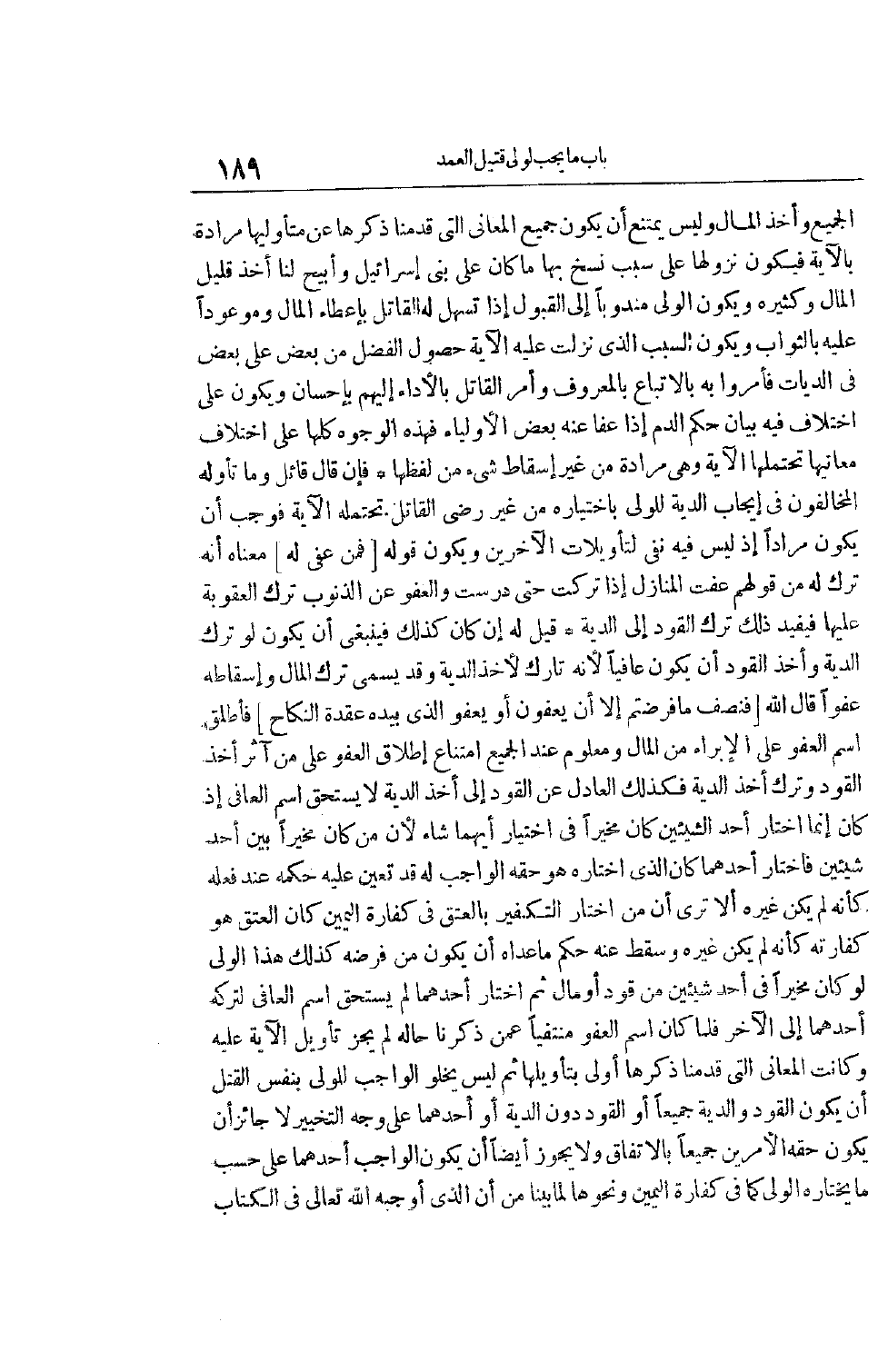 الْجَمِيعِ وَأَخْذِ الْمَالِ وَلَيْسَ يَمْتَنِعُ أَنْ يَكُونَ جَمِيعُ الْمَعَانِي الَّتِي قَدَّمْنَا ذِكْرَهَا عَنْ مُتَأَوِّلِيهَا مُرَادَةً بِالْآيَةِ فَيَكُونُ نُزُولُهَا عَلَى سَبَبَ نَسْخٍ بِهَا مَا كَانَ عَلَى بَنِي إسْرَائِيلَ وَأُبِيحَ لنا أَخْذُ قَلِيلِ الْمَالِ وَكَثِيرِهِ وَيَكُونُ الْوَلِيُّ مَنْدُوبًا إلَى الْقَبُولِ إذَا تَسَهَّلَ لَهُ الْقَاتِلُ بِإِعْطَاءِ الْمَالِ وَمَوْعُودًا عَلَيْهِ بِالثَّوَابِ وَيَكُونُ السَّبَبُ الَّذِي نَزَلَتْ عَلَيْهِ الْآيَةُ حُصُولَ الْفَضْلِ مِنْ بَعْضٍ عَلَى بَعْضٍ فِي الدِّيَاتِ فَأُمِرُوا بِهِ بِالِاتِّبَاعِ بِالْمَعْرُوفِ وَأُمِرَ الْقَاتِلُ بِالْأَدَاءِ إلَيْهِمْ بِإِحْسَانٍ وَيَكُونُ عَلَى اخْتِلَافٍ فِيهِ بَيَانُ حُكْمِ الدَّمِ إذَا عَفَا عَنْهُ بَعْضُ الْأَوْلِيَاءِ فَهَذِهِ الْوُجُوهُ كُلُّهَا عَلَى اخْتِلَافِ مَعَانِيهَا تَحْتَمِلُهَا الْآيَةُ وَهِيَ مُرَادَةٌ مِنْ غَيْرِ إسْقَاطِ شَيْءٍ مِنْ لَفْظِهَا فَإِنْ قَالَ قَائِلٌ وَمَا تَأَوَّلَهُ الْمُخَالِفُونَ فِي إيجَابِ الدِّيَةِ لِلْوَلِيِّ بِاخْتِيَارِهِ مِنْ غَيْرِ رِضَى الْقَاتِلِ تَحْتَمِلُهُ الْآيَةُ فَوَجَبَ أَنْ يَكُونَ مُرَادًا إذْ لَيْسَ فِيهِ نَفْيٌ لِتَأْوِيلَاتِ الْآخَرِينَ وَيَكُونُ قَوْلُهُ [فَمَنْ عُفِيَ لَهُ] مَعْنَاهُ أَنَّهُ تَرَكَ لَهُ مِنْ قَوْلِهِمْ عَفَتِ الْمَنَازِلُ إذَا تُرِكَتْ حَتَّى دُرِسَتْ وَالْعَفْوُ عَنْ الذُّنُوبِ تَرْكُ الْعُقُوبَةِ عَلَيْهَا فَيُفِيدُ ذَلِكَ تَرْكَ الْقَوَدِ إلَى الدِّيَةِ قِيل لَهُ إنْ كَانَ كَذَلِكَ فَيَنْبَغِي أَنْ يَكُونَ لَوْ تَرَكَ الدِّيَةَ وَأَخَذَ الْقَوَدَ أَنْ يَكُونَ عَافِيًا لِأَنَّهُ تَارِكٌ لِأَخْذِ الدِّيَةِ وَقَدْ يُسَمَّى تَرْكُ الْمَالِ وَإِسْقَاطُهُ عَفْوًا قَالَ اللَّهُ [فَنِصْفُ مَا فَرَضْتُمْ إِلَّا أَنْ يَعْفُونَ أَوْ يَعْفُوَا الَّذِي بِيَدِهِ عُقْدَةُ النِّكاحِ] فَأَطْلَقَ