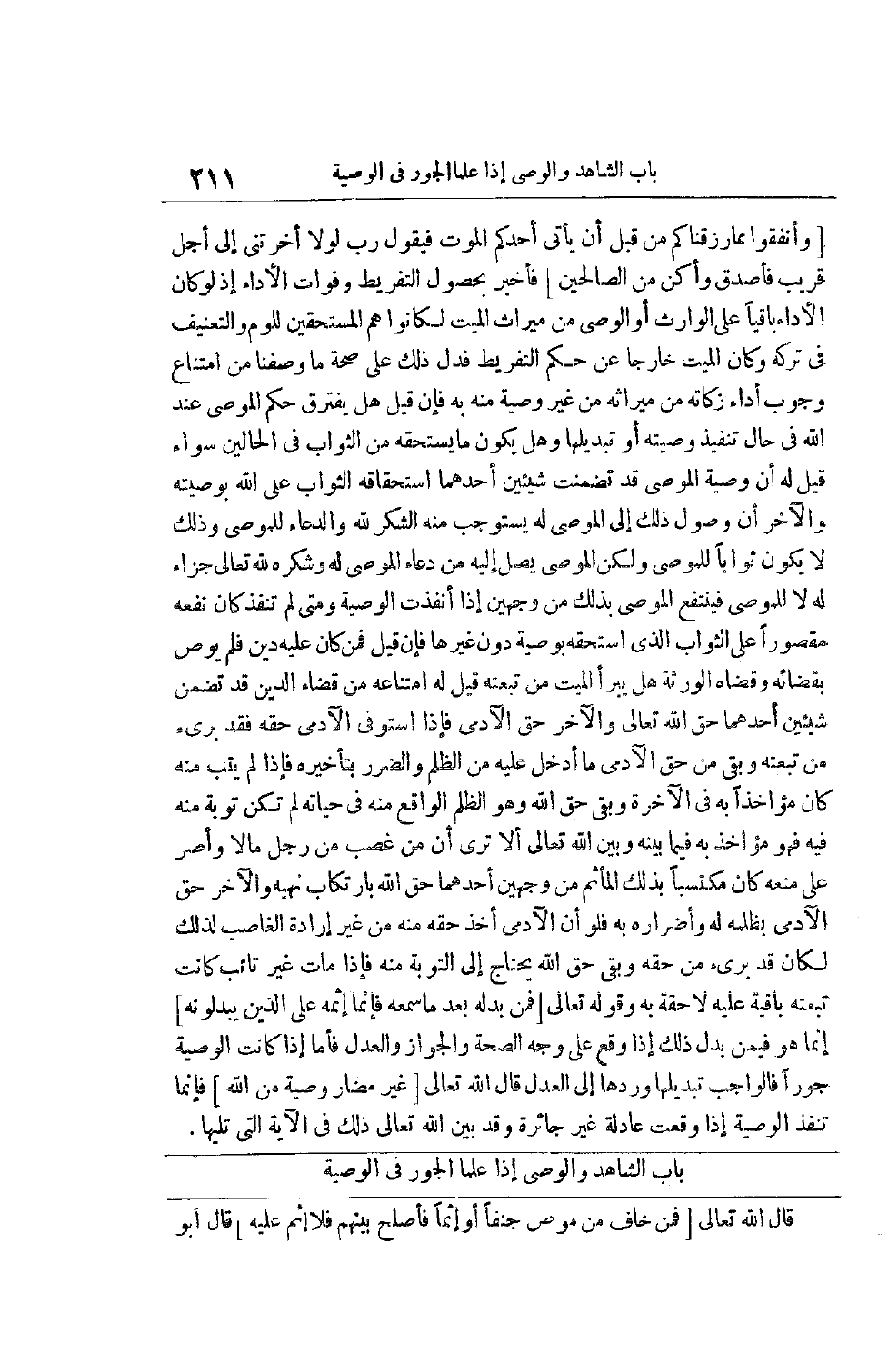 قَالَ اللَّهُ تَعَالَى [فَمَنْ خافَ مِنْ مُوصٍ جَنَفاً أَوْ إِثْماً فَأَصْلَحَ بَيْنَهُمْ فَلا إِثْمَ عَلَيْهِ] قال أبو