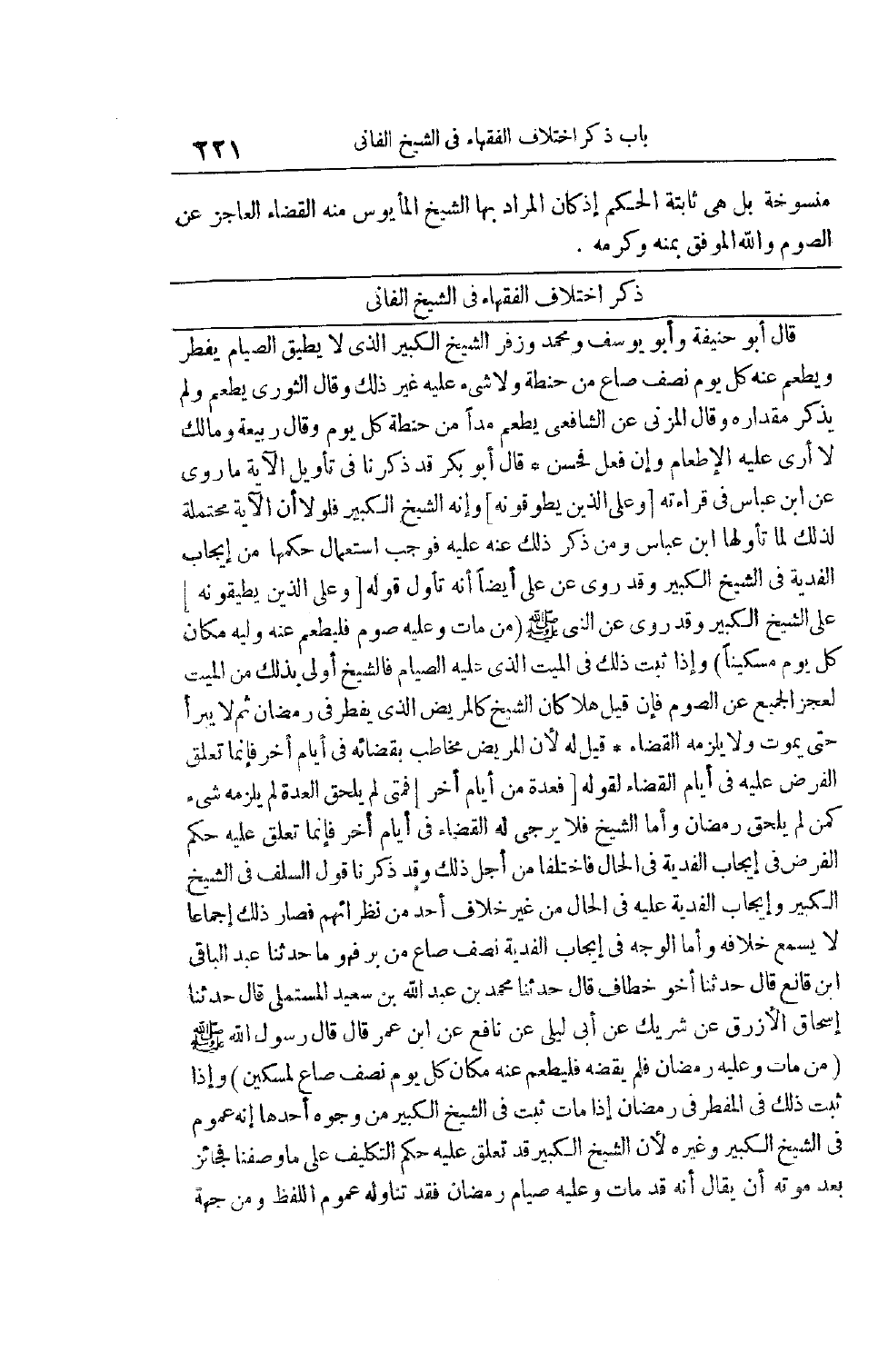 ذِكْرِ اخْتِلَافِ الْفُقَهَاءِ فِي الشَّيْخِ الْفَانِي