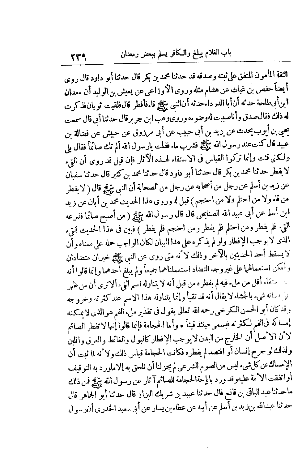 وروى هَذَا الْحَدِيثَ مُحَمَّدُ بْنُ أَبَانَ عَنْ زَيْدِ ابن أَسْلَمَ عَنْ أَبِي عُبَيْدِ اللَّهِ الصُّنَابِحِيِّ قَالَ قَالَ رَسُولُ اللَّهِ صَلَّى اللَّهُ عَلَيْهِ وسلم (مَنْ أَصْبَحَ صَائِمًا فَذَرَعَهُ الْقَيْءُ فَلَمْ يُفْطِرْ وَمَنْ احْتَلَمَ فَلَمْ يُفْطِرْ وَمَنْ احْتَجَمَ فَلَمْ يفطر)
