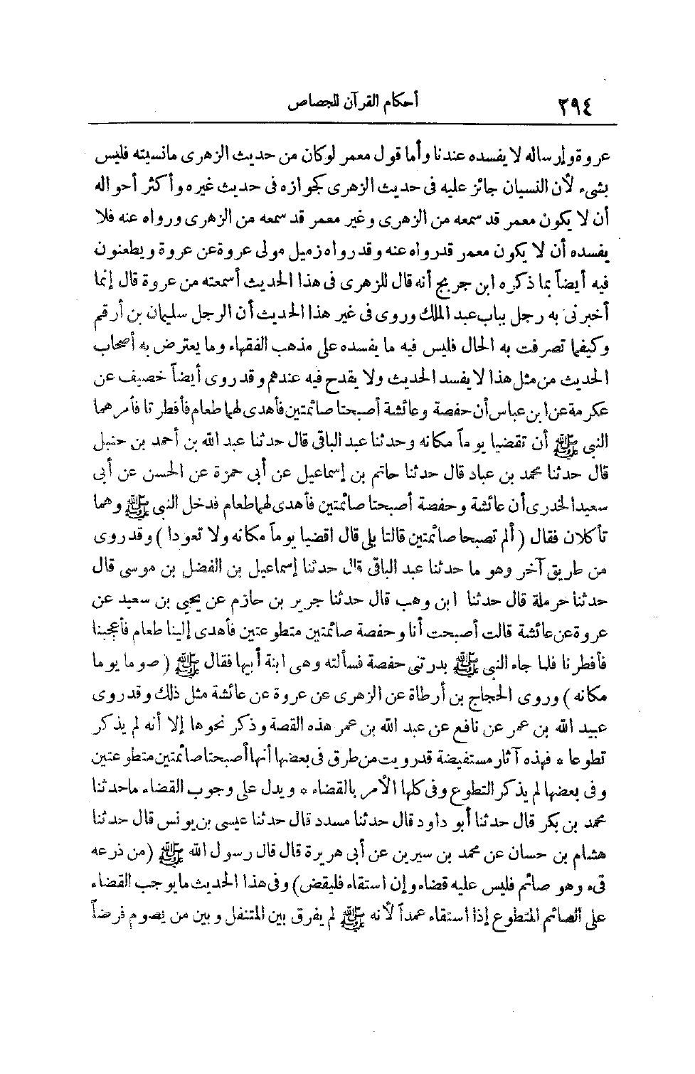 وَرَوَى الْحَجَّاجُ بْنُ أَرْطَاةَ عَنْ الزُّهْرِيِّ عَنْ عُرْوَةَ عَنْ عَائِشَةَ مِثْلَ ذَلِكَ وَقَدْ رَوَى عُبَيْدُ اللَّهِ بْنُ عُمَرَ عَنْ نَافِعٍ عَنْ عَبْدِ اللَّهِ بْنِ عُمَرَ هَذِهِ الْقِصَّةَ وَذَكَرَ نَحْوَهَا إلَّا أَنَّهُ لَمْ يَذْكُرْ تَطَوُّعًا فَهَذِهِ آثَارٌ مُسْتَفِيضَةٌ قَدْ رُوِيَتْ من طرق في بعضها أنها أَصْبَحَتَا صَائِمَتَيْنِ مُتَطَوِّعَتَيْنِ وَفِي بَعْضِهَا لَمْ يَذْكُرْ التَّطَوُّعَ وَفِي كُلِّهَا الْأَمْرُ بِالْقَضَاءِ وَيَدُلُّ عَلَى وُجُوبِ الْقَضَاءِ