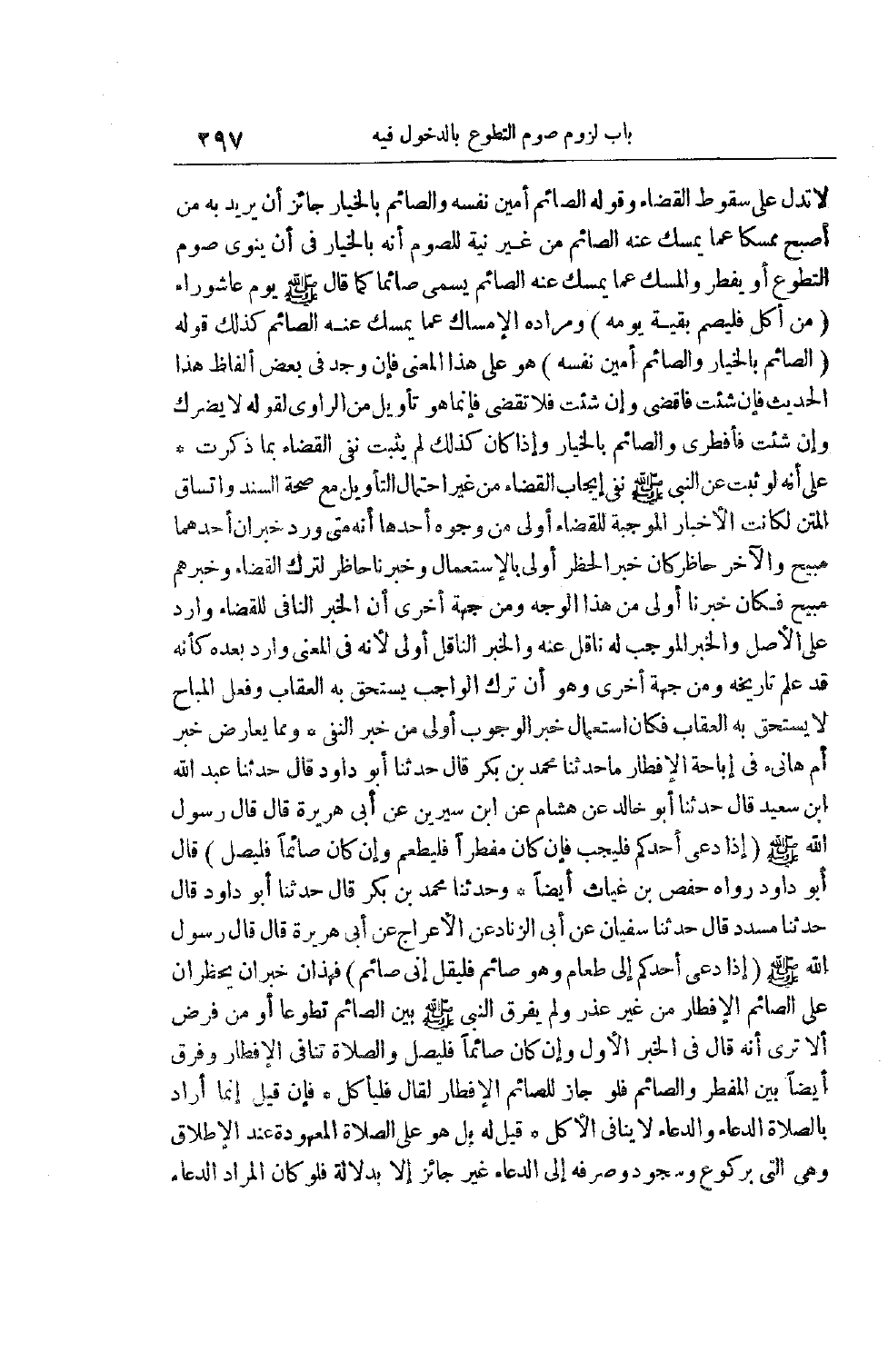 حَدَّثَنَا مُحَمَّدُ بْنُ بَكْرٍ قَالَ حَدَّثَنَا أبو داود قال حدثنا عبد الله ابن سَعِيدٍ قَالَ حَدَّثَنَا أَبُو خَالِدٍ عَنْ هِشَامٍ عَنْ ابْنِ سِيرِينَ عَنْ أَبِي هُرَيْرَةَ قَالَ قَالَ رَسُولُ اللَّهِ صَلَّى اللَّهُ عَلَيْهِ وَسَلَّمَ (إذَا دُعِيَ أَحَدُكُمْ فَلْيُجِبْ فَإِنْ كَانَ مُفْطِرًا فَلْيَطْعَمْ وَإِنْ كَانَ صَائِمًا فَلْيُصَلِّ) قَالَ أَبُو دَاوُد رَوَاهُ حَفْصُ بْنُ غِيَاثٍ