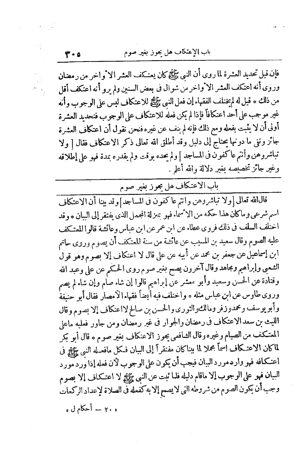 بَابٌ الِاعْتِكَافُ هَلْ يَجُوزُ بِغَيْرِ صَوْمٍ