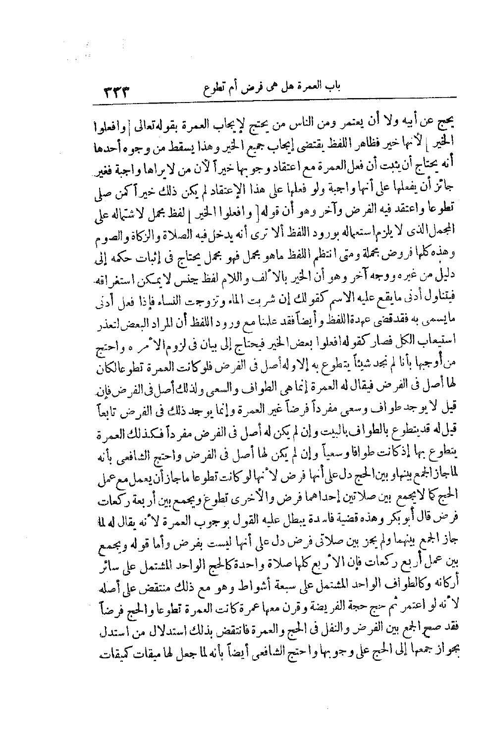 يَحُجَّ عَنْ أَبِيهِ وَلَا أَنْ يَعْتَمِرَ وَمِنْ النَّاسِ مَنْ يَحْتَجُّ لِإِيجَابِ الْعُمْرَةِ بِقَوْلِهِ تَعَالَى [وَافْعَلُوا الْخَيْرَ] لِأَنَّهَا خَيْرٌ فَظَاهِرُ اللَّفْظِ يَقْتَضِي إيجَابَ جَمِيعِ الْخَيْرِ وَهَذَا يَسْقُطُ مِنْ وُجُوهٍ أَحَدُهَا أَنَّهُ يُحْتَاجُ أَنْ يَثْبُتَ أَنَّ فِعْلَ الْعُمْرَةِ مَعَ اعتقاد وجوبها خيرا لِأَنَّ مَنْ لَا يَرَاهَا وَاجِبَةً فَغَيْرُ جَائِزٍ أَنْ يَفْعَلَهَا عَلَى أَنَّهَا وَاجِبَةٌ وَلَوْ فَعَلَهَا عَلَى هَذَا الِاعْتِقَادِ لَمْ يَكُنْ ذَلِكَ خَيْرًا كَمَنْ صَلَّى تَطَوُّعًا وَاعْتَقَدَ فِيهِ الْفَرْضَ وَآخَرُ وهو أن قوله [وَافْعَلُوا الْخَيْرَ] لَفْظٌ مُجْمَلٌ لِاشْتِمَالِهِ عَلَى الْمُجْمَلِ الَّذِي لَا يَلْزَمُ اسْتِعْمَالُهُ بِوُرُودِ اللَّفْظِ أَلَا تَرَى أَنَّهُ يَدْخُلُ فِيهِ الصَّلَاةُ وَالزَّكَاةُ وَالصَّوْمُ وَهَذِهِ كُلُّهَا فُرُوضٌ مُجْمَلَةٌ وَمَتَى انْتَظَمَ اللَّفْظُ مَا هُوَ مُجْمَلٌ فَهُوَ مُجْمَلٌ يَحْتَاجُ فِي إثْبَاتِ حُكْمِهِ إلَى دَلِيلٍ مِنْ غَيْرِهِ وَوَجْهٌ آخَرُ وَهُوَ أَنَّ الْخَيْرَ بِالْأَلِفِ وَاللَّامِ لَفْظُ جِنْسٍ لَا يُمْكِنُ اسْتِغْرَاقُهُ فَيَتَنَاوَلُ أَدْنَى مَا يَقَعُ عَلَيْهِ الِاسْمُ كَقَوْلِكَ إنْ شَرِبْتُ الْمَاءَ وَتَزَوَّجْتُ النِّسَاءَ فَإِذَا فَعَلَ أَدْنَى مَا يُسَمَّى بِهِ فَقَدْ قَضَى عُهْدَةَ اللَّفْظِ وَأَيْضًا فَقَدْ عَلِمْنَا مَعَ وُرُودِ اللَّفْظِ أَنَّ الْمُرَادَ الْبَعْضُ لِتَعَذُّرِ اسْتِيعَابِ الْكُلِّ فَصَارَ كَقَوْلِهِ افْعَلُوا بَعْضَ الْخَيْرِ فَيَحْتَاجُ إلَى بَيَانٍ فِي لُزُومِ الْأَمْرِ وَاحْتَجَّ مَنْ أَوْجَبَهَا بِأَنَّا لَمْ نَجِدْ شَيْئًا يُتَطَوَّعُ بِهِ إلَّا وَلَهُ أَصْلٌ فِي الْفَرْضِ فَلَوْ كَانَتْ الْعُمْرَةُ تَطَوُّعًا لَكَانَ لَهَا أَصْلٌ فِي الْفَرْضِ فَيُقَالُ لَهُ الْعُمْرَةُ إنَّمَا هِيَ الطَّوَافُ وَالسَّعْيُ وَلِذَلِكَ أَصْلٌ فِي الْفَرْضِ فَإِنْ قِيلَ لَا يُوجَدُ طَوَافٌ وَسَعْيٌ مُفْرَدًا فَرْضًا غَيْرَ الْعُمْرَةِ وَإِنَّمَا يُوجَدُ ذَلِكَ فِي الْفَرْضِ تَابِعًا قِيلَ لَهُ قَدْ يُتَطَوَّعُ بِالطَّوَافِ بِالْبَيْتِ وَإِنْ لَمْ يَكُنْ لَهُ أَصْلٌ فِي الْفَرْضِ مُفْرَدًا فَكَذَلِكَ العمرة يتطوع بها إذ كَانَتْ طَوَافًا وَسَعْيًا وَإِنْ لَمْ يَكُنْ لَهَا أَصْلٌ فِي الْفَرْضِ وَاحْتَجَّ الشَّافِعِيُّ بِأَنَّهُ لَمَّا جَازَ الْجَمْعُ بَيْنَهَا وَبَيْنَ الْحَجِّ دَلَّ عَلَى أَنَّهَا فَرْضٌ لِأَنَّهَا لَوْ كَانَتْ تَطَوُّعًا مَا جَازَ أَنْ يُعْمَلَ مَعَ عَمَلِ الْحَجِّ كَمَا لَا يُجْمَعُ بَيْنَ صَلَاتَيْنِ إحْدَاهُمَا فَرْضٌ وَالْأُخْرَى تطوع ويجمع بين أربعة رَكَعَاتٍ فَرْضٍ قَالَ أَبُو بَكْرٍ وَهَذِهِ قَضِيَّةٌ فَاسِدَةٌ يَبْطُلُ عَلَيْهِ الْقَوْلُ بِوُجُوبِ الْعُمْرَةِ لِأَنَّهُ يُقَالُ لَهُ لَمَّا جَازَ الْجَمْعُ بَيْنَهُمَا وَلَمْ يَجُزْ بَيْنَ صَلَاتَيْ فَرْضٍ دَلَّ عَلَى أَنَّهَا لَيْسَتْ بِفَرْضٍ وَأَمَّا قَوْلُهُ وَيُجْمَعُ بَيْنَ عَمَلِ أَرْبَعِ رَكَعَاتٍ فَإِنَّ الْأَرْبَعَ كُلَّهَا صَلَاةٌ وَاحِدَةٌ كالحج الواحد المشتمل على سائر أركانه وكالطواف الْوَاحِدِ الْمُشْتَمِلِ عَلَى سَبْعَةِ أَشْوَاطٍ وَهُوَ مَعَ ذَلِكَ مُنْتَقِضٌ عَلَى أَصْلِهِ لِأَنَّهُ لَوْ اعْتَمَرَ ثُمَّ حَجَّ حَجَّةَ الْفَرِيضَةِ وَقَرَنَ مَعَهَا عُمْرَةً كَانَتْ الْعُمْرَةُ تَطَوُّعًا وَالْحَجُّ فَرْضًا فَقَدْ صَحَّ الْجَمْعُ بَيْنَ الْفَرْضِ وَالنَّفَلِ فِي الْحَجِّ وَالْعُمْرَةِ فَانْتَقَضَ بِذَلِكَ اسْتِدْلَالُ مَنْ اسْتَدَلَّ بِجَوَازِ جَمْعِهَا إلَى الْحَجِّ عَلَى وُجُوبِهَا وَاحْتَجَّ الشَّافِعِيُّ أَيْضًا بِأَنَّهُ لَمَّا جَعَلَ لَ