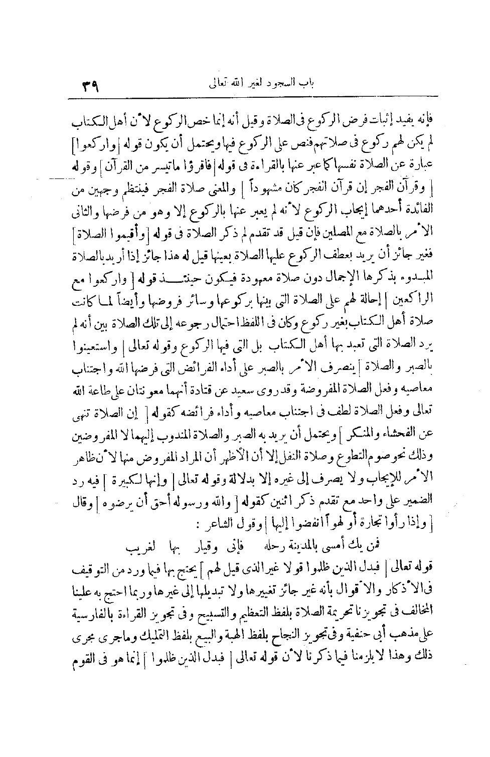 فَإِنَّهُ يُفِيدُ إثْبَاتَ فَرْضِ الرُّكُوعِ فِي الصَّلَاةِ وَقِيلَ إنَّهُ إنَّمَا خَصَّ الرُّكُوعَ لِأَنَّ أَهْلَ الْكِتَابِ لَمْ يَكُنْ لَهُمْ رُكُوعٌ فِي صَلَاتِهِمْ فَنَصَّ عَلَى الرُّكُوعِ فِيهَا وَيَحْتَمِلُ أَنْ يَكُونَ قوله [وَارْكَعُوا] عِبَارَةً عَنْ الصَّلَاةِ نَفْسِهَا كَمَا عَبَّرَ عَنْهَا بالقراءة في قوله [فَاقْرَؤُا ما تَيَسَّرَ مِنَ الْقُرْآنِ] وَقَوْلِهِ [وَقُرْآنَ الْفَجْرِ إِنَّ قُرْآنَ الْفَجْرِ كانَ مَشْهُوداً] وَالْمَعْنَى صَلَاةُ الْفَجْرِ فَيَنْتَظِمُ وَجْهَيْنِ مِنْ الْفَائِدَةِ أَحَدُهُمَا إيجَابُ الرُّكُوعِ لِأَنَّهُ لَمْ يُعَبِّرُ عَنْهَا بِالرُّكُوعِ إلَّا وَهُوَ مِنْ فَرْضِهَا وَالثَّانِي الْأَمْرُ بِالصَّلَاةِ مَعَ الْمُصَلِّينَ فَإِنْ قِيلَ قَدْ تَقَدَّمَ لم ذكر الصلاة في قوله [وَأَقِيمُوا الصَّلاةَ] فَغَيْرُ جَائِزٍ أَنْ يُرِيدَ بِعِطْفِ الرُّكُوعِ عَلَيْهَا الصَّلَاةَ بِعَيْنِهَا قِيلَ لَهُ هَذَا جَائِزٌ إذَا أُرِيدَ بِالصَّلَاةِ الْمَبْدُوءِ بِذِكْرِهَا الْإِجْمَالُ دُونَ صَلَاةٍ مَعْهُودَةٍ فَيَكُونُ حِينَئِذٍ قَوْلُهُ [وَارْكَعُوا مَعَ الرَّاكِعِينَ] إحَالَةً لَهُمْ عَلَى الصَّلَاةِ الَّتِي بَيَّنَهَا بِرُكُوعِهَا وَسَائِرِ فُرُوضِهَا وَأَيْضًا لَمَّا كَانَتْ صَلَاةُ أَهْلِ الْكِتَابِ بِغَيْرِ رُكُوعٍ وَكَانَ فِي اللَّفْظِ احْتِمَالُ رُجُوعِهِ إلَى تِلْكَ الصَّلَاةِ بَيَّنَ أَنَّهُ لَمْ يرد الصلاة التي تعبد بِهَا أَهْلُ الْكِتَابِ بَلْ الَّتِي فِيهَا الرُّكُوعُ