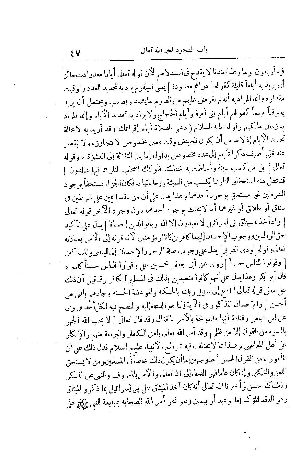 قَالَ أَبُو بَكْرٍ وَهَذَا يَدُلُّ عَلَى أَنَّهُمْ كَانُوا مُتَعَبِّدِينَ بِذَلِكَ فِي الْمُسْلِمِ وَالْكَافِرِ وَقَدْ قِيلَ إنَّ ذَلِكَ عَلَى مَعْنَى قَوْله تَعَالَى [ادْعُ إِلى سَبِيلِ رَبِّكَ بِالْحِكْمَةِ وَالْمَوْعِظَةِ الْحَسَنَةِ وَجادِلْهُمْ بِالَّتِي هِيَ أَحْسَنُ] وَالْإِحْسَانُ الْمَذْكُورُ فِي الْآيَةِ إنَّمَا هُوَ الدُّعَاءُ إلَيْهِ وَالنُّصْحُ فِيهِ لِكُلِّ أَحَدٍ وَرُوِيَ عَنْ ابْنِ عَبَّاسٍ وَقَتَادَةَ أَنَّهَا مَنْسُوخَةٌ بِالْأَمْرِ بِالْقِتَالِ وَقَدْ قَالَ تَعَالَى [لا يُحِبُّ اللَّهُ الْجَهْرَ بِالسُّوءِ مِنَ الْقَوْلِ إِلَّا مَنْ ظُلِمَ] وَقَدْ أَمَرَ اللَّهُ تَعَالَى بِلَعْنِ الْكُفَّارِ وَالْبَرَاءَةِ مِنْهُمْ وَالْإِنْكَارِ عَلَى أَهْلِ الْمَعَاصِي وَهَذَا مِمَّا لَا يَخْتَلِفْ فِيهِ شَرَائِعُ الْأَنْبِيَاءِ عَلَيْهِمْ السَّلَامُ فَدَلَّ ذَلِكَ عَلَى أَنَّ الْمَأْمُورَ بِهِ مِنْ الْقَوْلِ الْحَسَنِ أَحَدُ وَجْهَيْنِ إمَّا أَنْ يَكُونَ ذلك خَاصًّا فِي الْمُسْلِمِينَ وَمَنْ لَا يَسْتَحِقُّ اللَّعْنَ وَالنَّكِيرَ وَإِنْ كَانَ عَامًّا فَهُوَ الدُّعَاءُ إلَى اللَّهِ تَعَالَى وَالْأَمْرُ بِالْمَعْرُوفِ وَالنَّهْيُ عَنْ الْمُنْكَرِ وَذَلِكَ كُلُّهُ حَسَنٌ وَأَخْبَرَنَا اللَّهُ تَعَالَى أَنَّهُ كَانَ أَخَذَ الْمِيثَاقَ عَلَى بَنِي إسْرَائِيلَ بِمَا ذكر والميثاق وهو الْعَقْدُ الْمُؤَكَّدُ إمَّا بِوَعِيدٍ أَوْ بِيَمِينٍ وَهُوَ نحو أمر الله الصحابة بمبايعة النبي صلّى الله عليه وسلم على